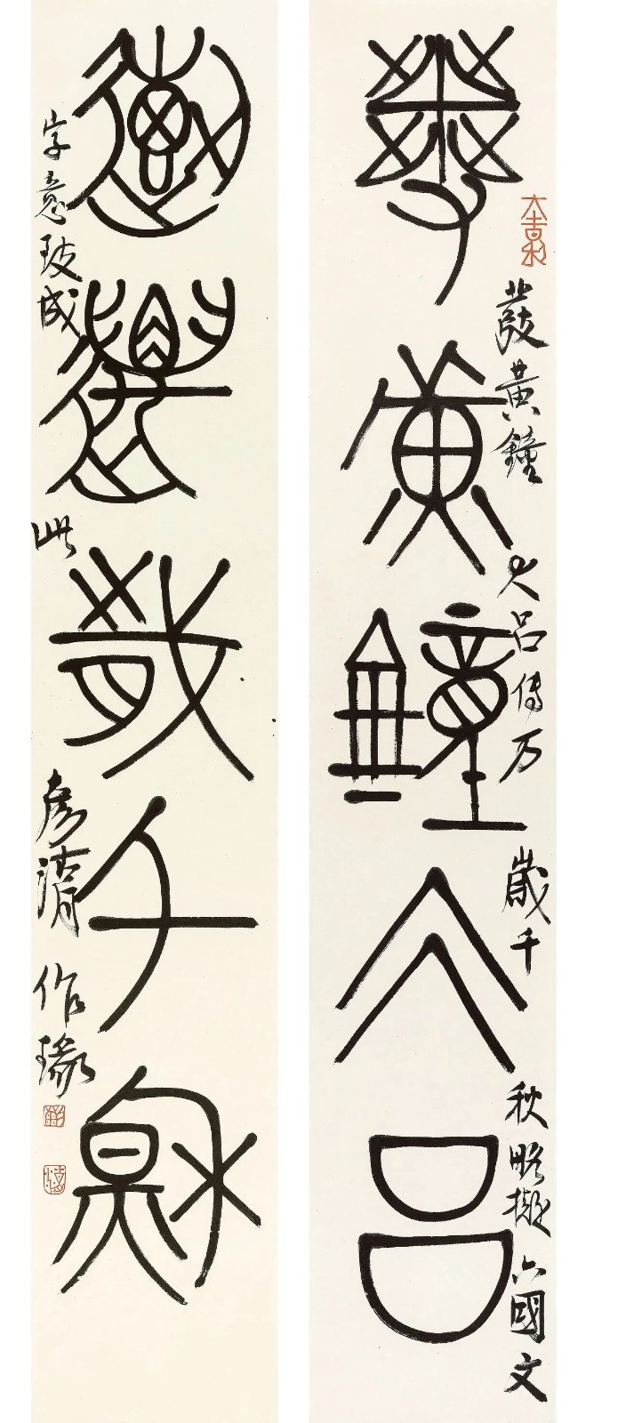 ▲ 刘彦湖,《篆书 发黄钟大吕 传万岁千秋 联》,水墨纸本,162x25cmx2,2020