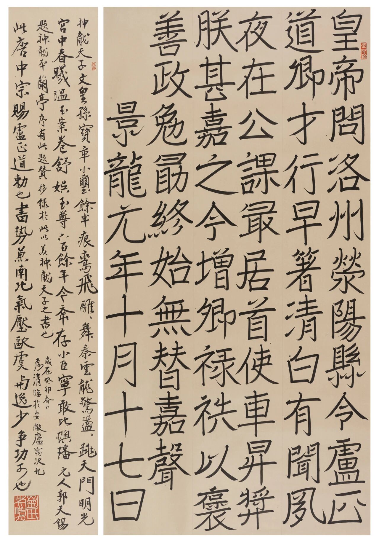 ▲ 刘彦湖《临唐中宗赐卢正道敕》,水墨纸本,295×15.11cm,295×50.5cm,2023