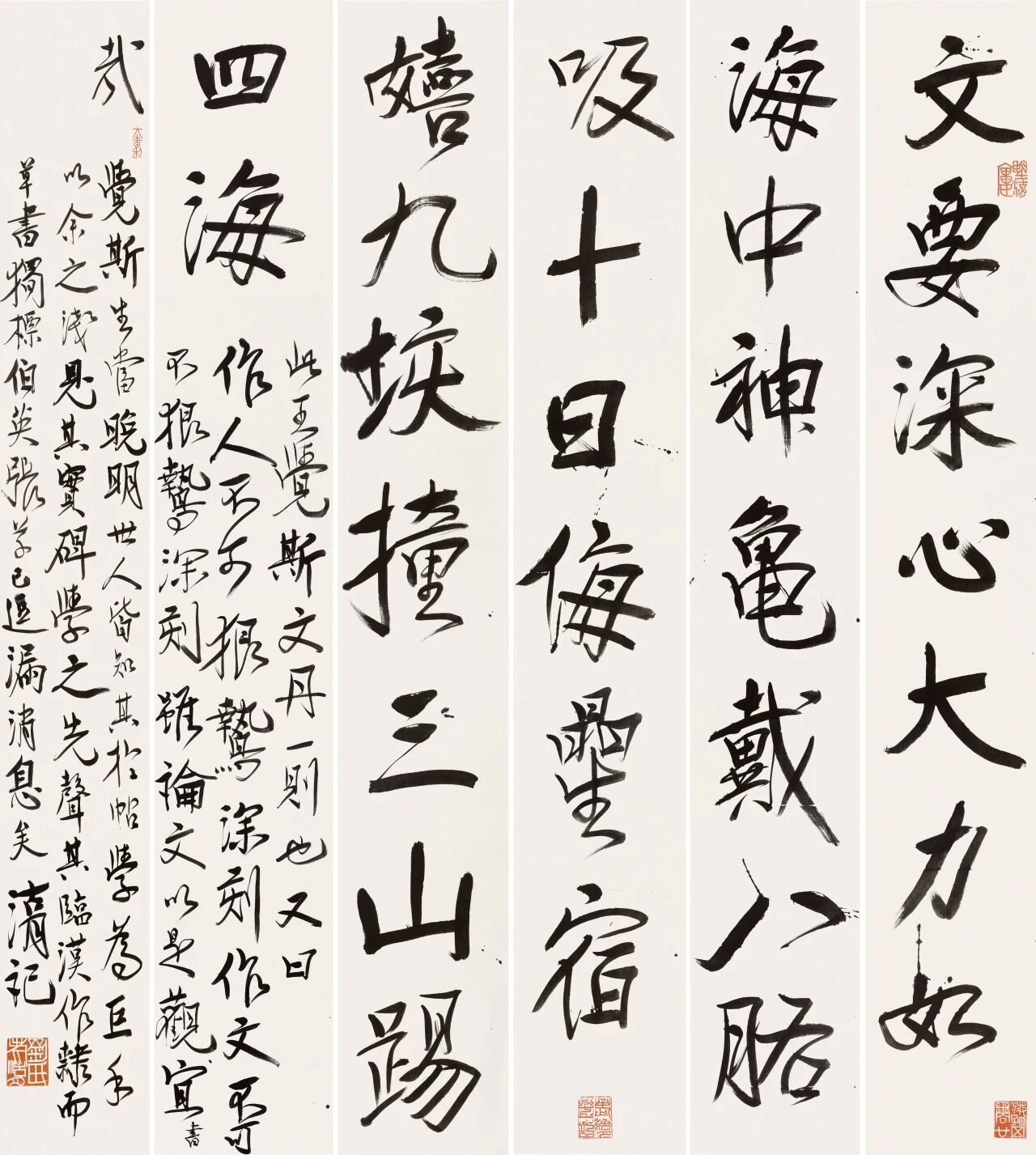 ▲ 刘彦湖《行书王铎文丹六条屏》,水墨纸本,337x49cmx6,2019
