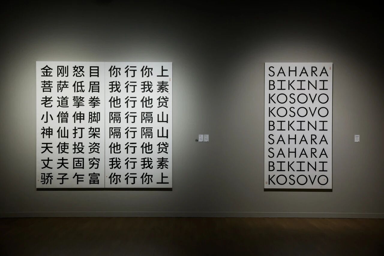 《书法与文脉》揭示出书法不仅是文以载道得以实现的媒介工具,不局限于一种由历史涤荡代代相传的绝技与审美取向,更意味着文字背后的权力结构变化。如此,“文脉”便与中国书法中的崇古价值取向联系起来,正如文艺复兴建立在意大利人对古希腊与古罗马文化的再发现与“当代”演绎,清代碑学通过“背离”帖学系统,由古代金石文字中拓宽取法范围,如果说“书法即文脉”,那么承袭何种文脉,又如何承袭/背离,是否成为了探索现代书法形态的理论起点?“词语和书写的边界”展览中,通过梳理二位当代书家在书法领域前沿地带的实践,给出了他们各具新意的答案。