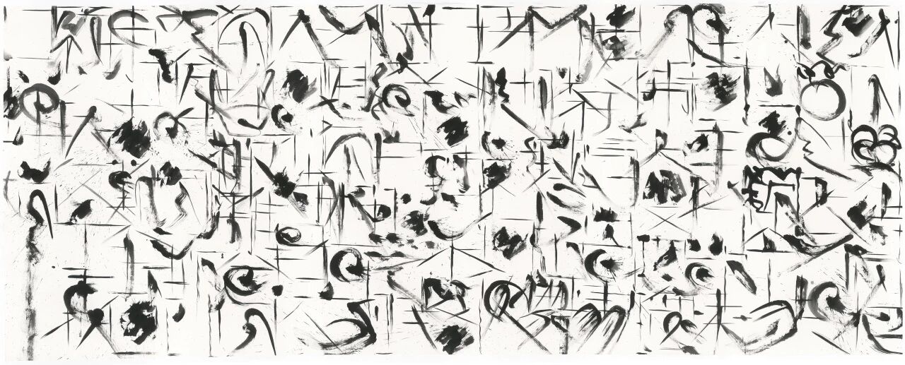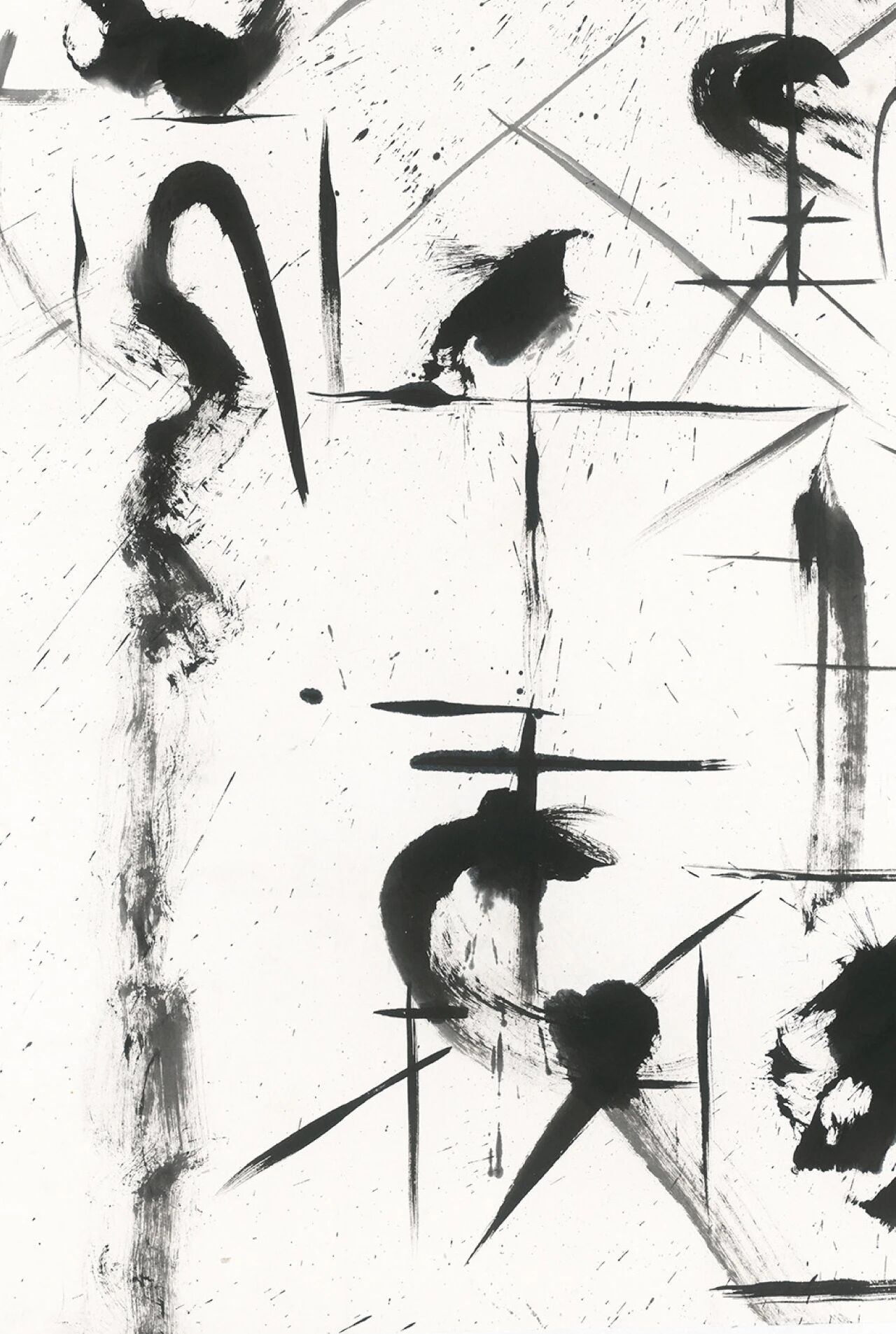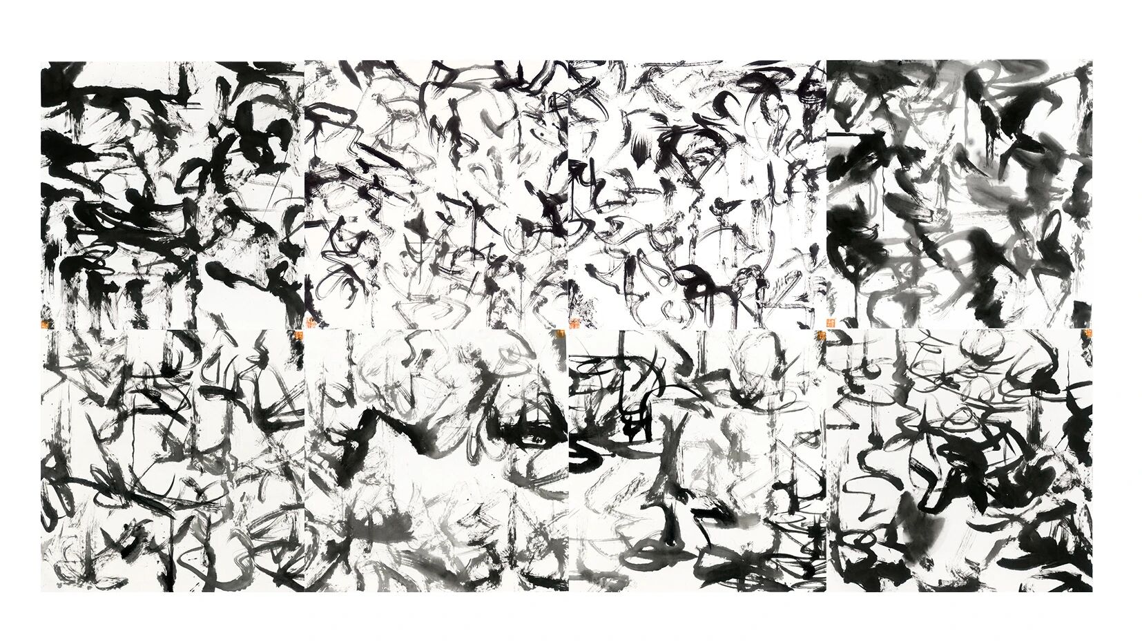 近年来,无谓摆放方向与阅读次序的《构成》系列中,难以释义的文字,由层叠的墨色与线条构成,艺术家由此将草书书写中的流动性与瞬时感推演到极致。这种极致的工作方式,也让作品与现代主义绘画,尤其是抽象艺术如此气质相通。