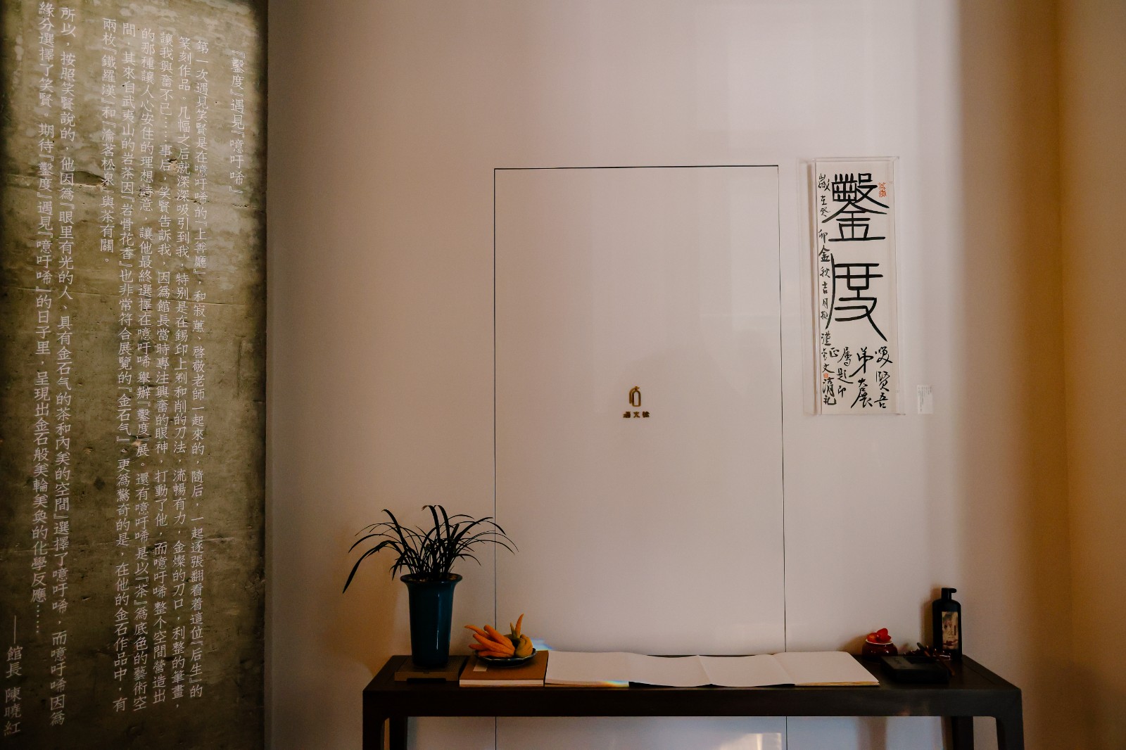 作为出品人,噫吁唏艺术馆的馆长陈晓红先生谈到他与凿度、与彭笑贤老师的一见倾情、被其作品深深打动,而彭笑贤老师也是因为看到馆长在看到那些作品时眼里有光而动容,尤其是在充分了解了空间的结构、布局、文化底蕴与其所透出同样的“金石”之气以及空间所透出的让心安住的理想诗意,让笑贤老师选择了噫吁唏。彼此的映照与契合成就了今日“凿度”之展。